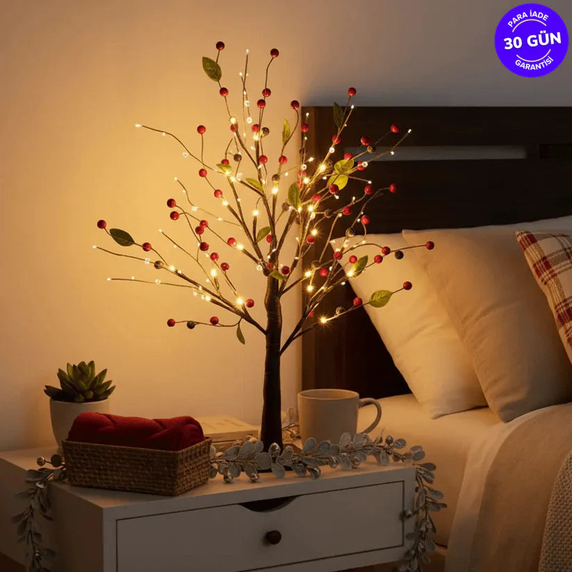 Hayır, tamamen yapay fakat gerçekçi görünümü olan bir dekor ürünüdür. Kırmızı kokina detayları ve LED ışıkları doğal bir görünüm sunar.